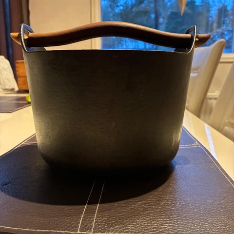 Emaloitu valurautainen Timo Sarpanevan "Saturnus" pata vuodelta 1960. Korkeus 120 mm ja suurin ulkohalkaisija 165 mm. Myynnissä myös muualla.