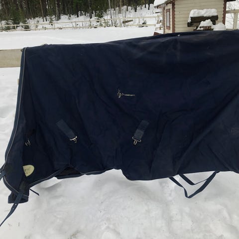 Myydään varsalla 1 syksy käytetty sininen fleesevuorellinen horse comfortin sadeloimi. 1 korjattu vekki, katso kuva 2. Hinta 20€