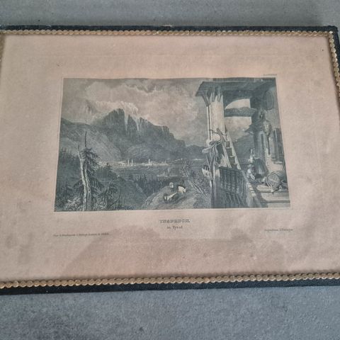 Vanha painokuvataulu. Jeesus kävelee vetten päällä ja Pietari.