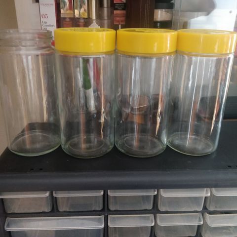 3 kpl lasisia Nestle purkkeja 1960-luvulta. Kork. 17cm. Halk 7cm. Kullanväriset muovikorkit. Yht.hinta 5e