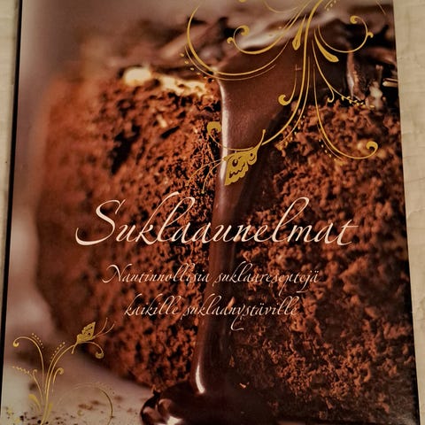 Upea kullattu kirja! Koristeeksi hyllyyn ja ohjeistukseksi! Yli 300 suklaareseptiä. Postikulut 6e.