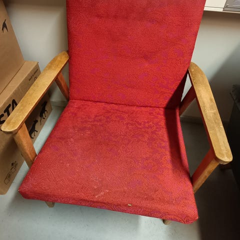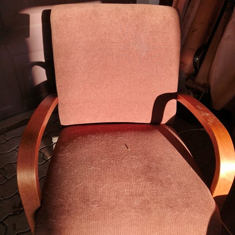 Mukaan myös puhdistusta vailla oleva, hieman vaaleampi tyyny. Tästä saa esim. hyvän rahin tehtyä tuolien kaveriksi.