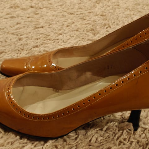Myydään hyväkuntoiset mokkapintaiset korkkarit. Koko pieni 37. Kantalaput kunnossa.