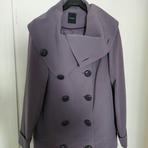 siisti ja hyväkuntoinen. päällinen polyesteriä 100%.Tämä on väriltään savunsininen jossa kirjottu etuosa, toinen puoli on yksinkertainen harmaa. Takki on kerran pesty eli erittäin hyvässä kunnossa.