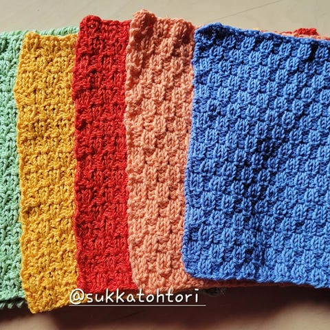 Kestäviä tiskirättejä, toinen puoli froteeta ha toinen trikoota.