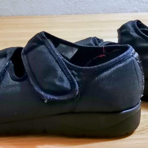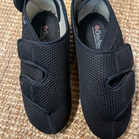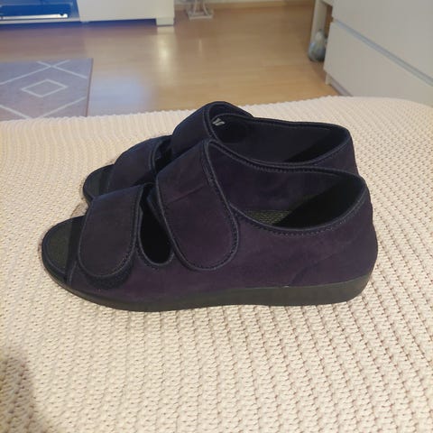 Ortopediset kengät, kerran kokeiltu sisällä. Auttaa ryhdin ja selkävaivojen kanssa.