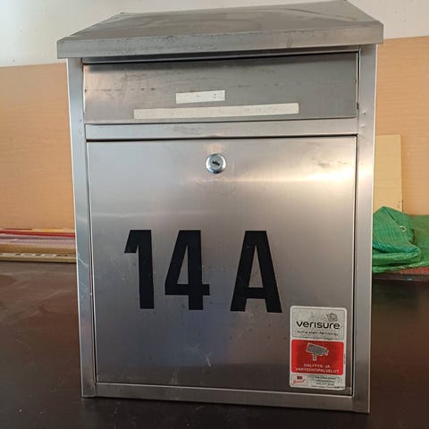 Jumbo Stainless Steel postilaatikko, valmistettu ruostumattomasta teräksestä. Sopii postin vastaanottoon ja säilytykseen. Materiaali on säänkestävä. Täysin käyttämätön , myydään tarpeettomana. Maksu käteisellä haettaessa.