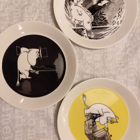Nouto Turusta tai postikulut postin taksojen mukaisesti. Myynnissä myös paljon muuta muumiaiheista.