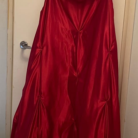 Myydään käyttämättömäksi jäänyt kaunis pitkä punainen juhlamekkomekko. Takaa ja edestä avonainen. Koko 40 tai 42, joustaa paljon. Kuvassa 165cm pitkän ja L/XL kokoisen yllä. Ei käytön jälkiä. Merkki on BodyFlirt.