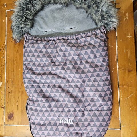 Pienen lapsen suojapussi lasten rattaisiin. Todella lämmin syksyllä, pakkaskeleillä ja suojasäälläkin. Väri on kaunis suklaan ruskea. Käy siis sekä pojalle että tytölle.