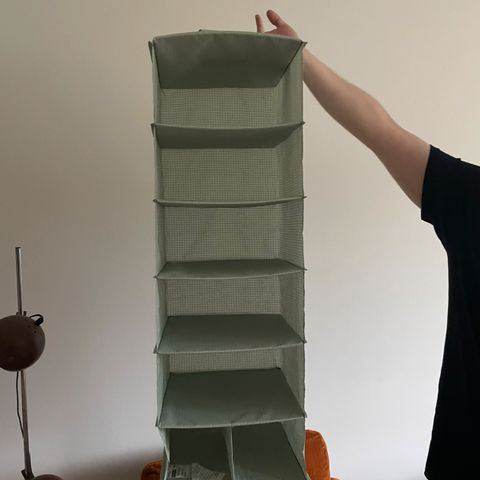 Käytännöllinen säilytystasku tavaroille, jotka on mukava pitää käden ulottuvilla sängyssä. Ripusta sängynpäätyyn tai sängyn reunalle, niin tärkeät tavarat on aina valmiina vuoteessa tai muialla mihin taskuston ripustat.