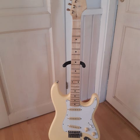 Hyväkuntoinen ja helpposoittoinen laadukkaista osista koottu stratocaster kitara telecasterin kaulalla. Tarkemmat speksit löytyvät viimeisestä kuvasta.