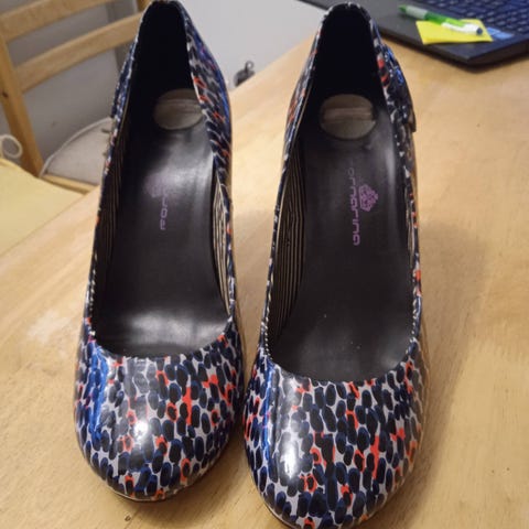 Kauniit hyväkuntoiset ja vähän käytetyt juhlakengät. Korko 9,5 cm. Sisämitta 26,5 cm.