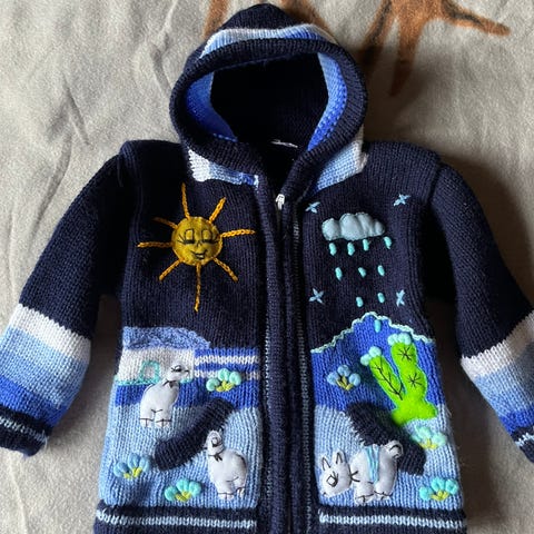 Valkoinen/vaaleanvihreä neuletakki 2 vuotiaalle. Napit kahdessa rivissä. Käy myös diili.. Ilm. 29.8.