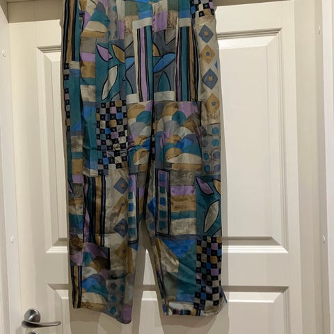Nellyn kapea malliset reisistä, mutta polven alta levenevät housut. Lahkeissa halkio, kangas super joustavaa ja mukavaa. Vyötärö korkeahko normaali.