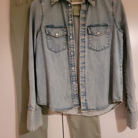 Kirjava, uusi, farkkutakin tyyppinen House takki.