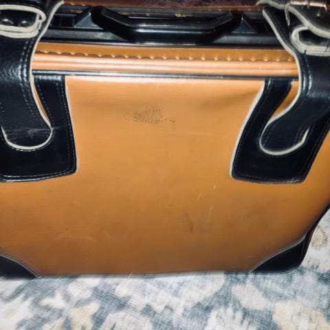 Ruskea nahka matkalaukku. Hyvä kuntoinen ja kiinnitys toimii hyvin. 45cm leveys ,33cm korkeus ja 15cm syvyys. Hyvä sisustus elementti ellei käyttöön.