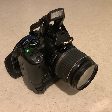 Hyväkuntoinen Canon EOS 400D järjestelmäkamera sis. 4Gb muistikortin, latauslaitteen sekä USB- johdon. Mukaan 18-55mm objekti.