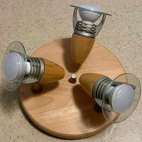 Massive-merkkinen kolmipäinen valaisin säädettävillä johdoilla. Hehkulamput max 60 wattia. Hyvässä kunnossa, väistyy muuton tieltä.