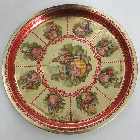 Taiteellinen tarjotin, makeisrasiat, vintage, aterimet, ruoste
