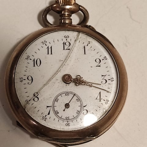 Samanlainen kello ebay:ssa lasi rikki, ilman viisareita 85,50 dollaria + shipping (viimeinen kuva).