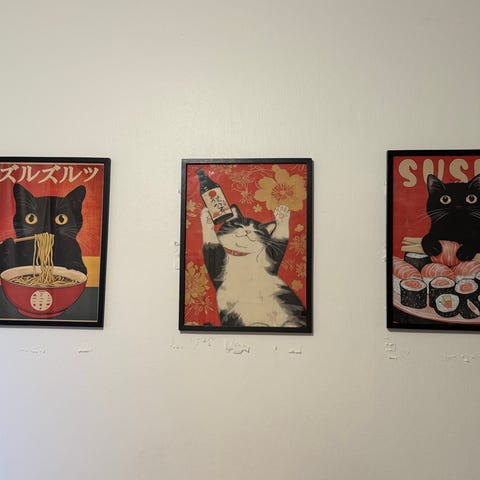 Sympaattinen taulu kissan ja koiran pennusta. Taulun koko kehyksineen 42x45 cm.