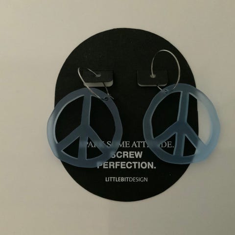 Myydään kerran käytetyt Littlebit design Humaani leijona korvakorut. Korurasia ja teksti mukaan.