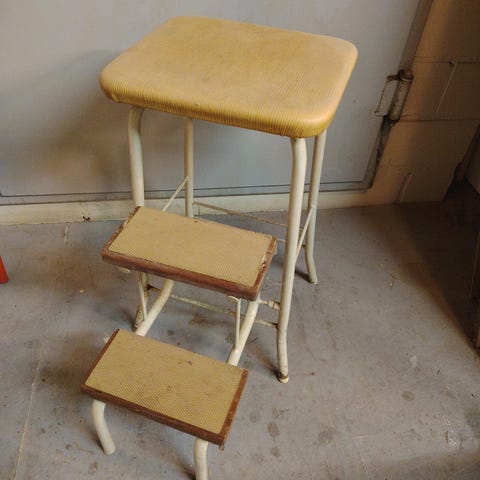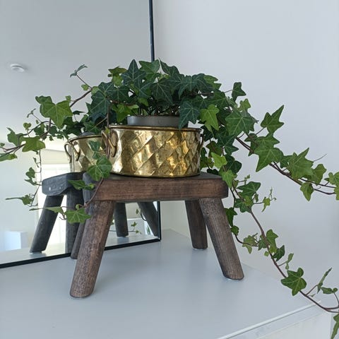 Paksusta puutavarasta (mäntyä) tehty jakkara, lev/syv 40/20cm, korkeus 28cm. Vaikka kukkatelineeksi.