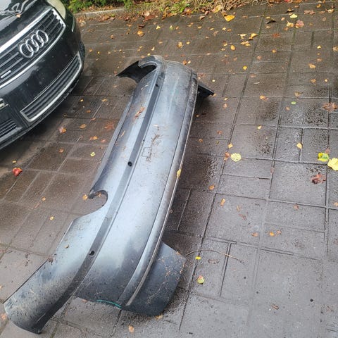 Puskurissa ainut selvästi silmiin osuva virhe on alanurkassa, mikä ei näy kuin katsoessa autoa altapäin. Sieltä on pieneltä alueelta hiottu pois katukiveyksen aiheuttamat naarmut. En maalauttanut aluetta, jos ostaja haluaakin maalauttaa koko puskurin eri väriin.