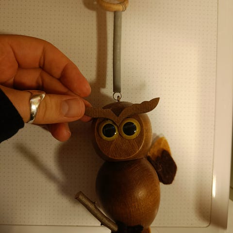 Myydään siistikuntoinen, helisevä pöllökoriste. Pituus n. 28 cm.