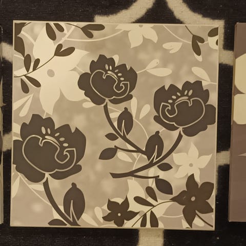 Kauniit kohokuviolliset kukka-aiheiset käsintehdyt taulut, takana kaikissa metallilenkki. 3kpl/20€ tai erikseen 8€/kpl