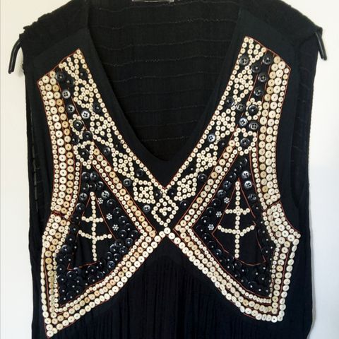 Koko arvioitu, ei lappuja. Pari kertaa käytetty. Materiaaliksi veikkaan viskoosia, enimmäkseen. Viininpunaista ja mustaa.