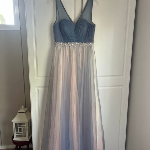 Erinomaisessa kunnossa oleva kerran käytetty vanhojentanssimekko. Mekko on lyhennetty pituudelle 165 cm. Mekko on ostettu iltapuku outletista.