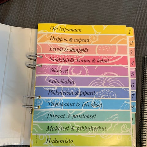 Uusi kansio makeille ja suolaisille herkkuresepteille. Kansion ryhmäväliköt helpottavat reseptien löytymistä