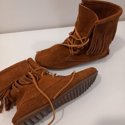 Minnetonka:n khakin väriset mokkasaapikkaat
