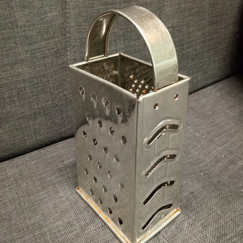 Alkuperäis pakkauksessa, Made in Italy Retro Raastin, jossa imu kuppi kiinnitys, 4 terää suikalointiin, siivutukseen, raastamiseen, ehjä ja terät ruosteettomia.