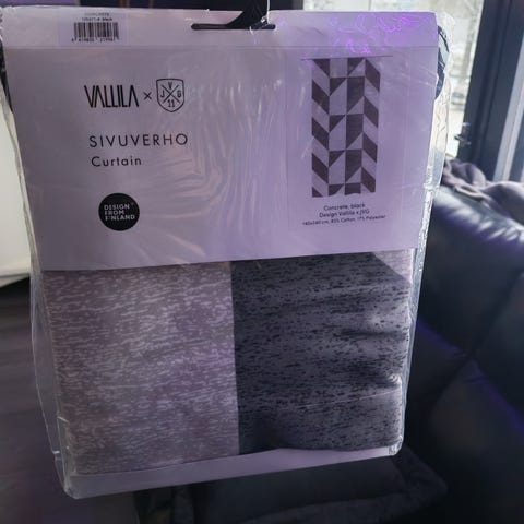 Uudet sivuverhot, joissa hopeanhohtoisia kuvioita, 25€/kpl