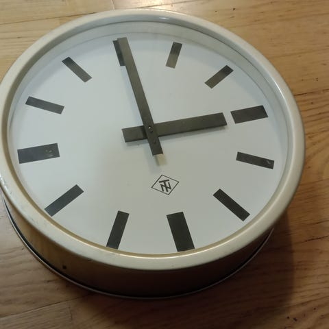 Harmaa Kello, jossa myös Ilman kosteus -ja Lämpömittari, Herätys, toimii yhdellä paristolla, koko 9x19cm, toimii.