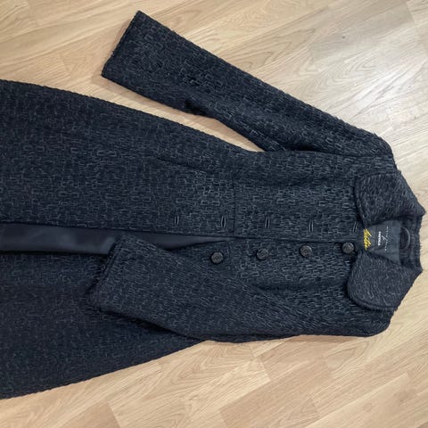 Äidiltäni jäänyt käyttämätön Fallan musta ruututakki villa-alpakka-polyesteria, vuori puuvilla-polyamidia.