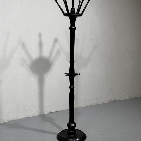 Jalka painavaa valurautaa - pysyy pystyssä painavammallakin kuormalla. Jalkaosassa teline molemminpuolin sateenvarjoa varten.