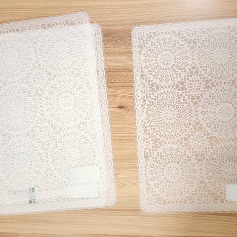 Pöytätabletit (muovia, tekstiilimäinen) 4kpl (ei ihan pilipali-laatua).