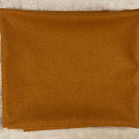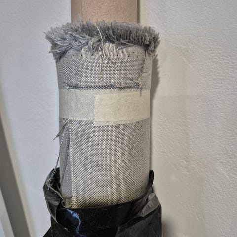 Reunassa ei lue mitä materiaalia, mutta sormituntumalla se on pellavaa tai ainakin puolipellavaa/ puuvillaa.