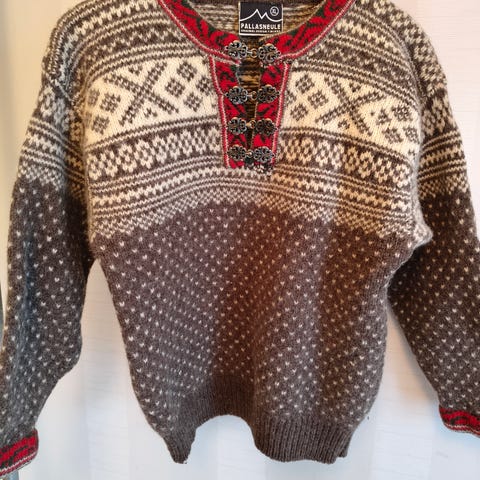 Myydään kuvan JE-Companyn villaneulepusero. Tuotteesta on kokolappu poissa, mutta vastaa mielestäni M kokoa. Pituus 75cm, ympärys kainalon alta n 100cm ja helman ympärys 90cm, mitat venyttämättä. Hihan pituus kainalo-ranne 45cm. Hinta 30 eur