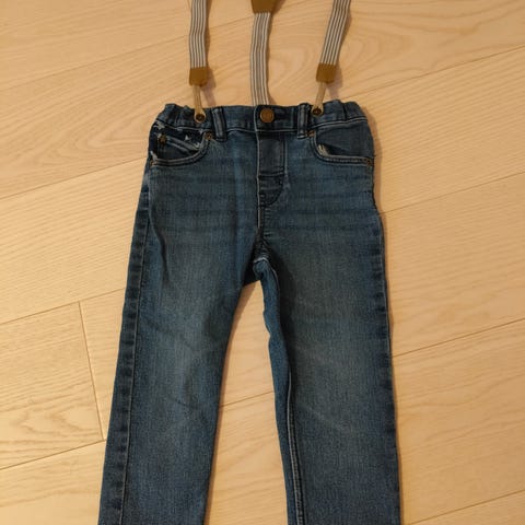 Ohuet farkut, joissa nauhakiristys vyötäröllä.
