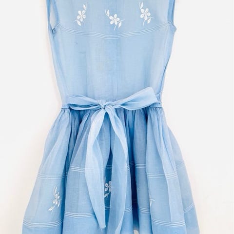 Perinnejuhlissa kerran käytetty pellavainen mekko, vanhasta (paksusta) lakanakankaasta teetetty paita. Noin 122-128 kokoiselle.