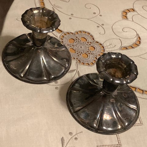 Aika on patinoinut kynttilänjalkaparin hienosti. En suosittele kiillotusta.