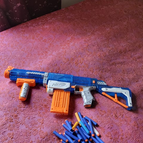 Myydään Nerf haulikko ase. Mukaan 10 panosta, 8 aseessa + pari ylimääräistä.