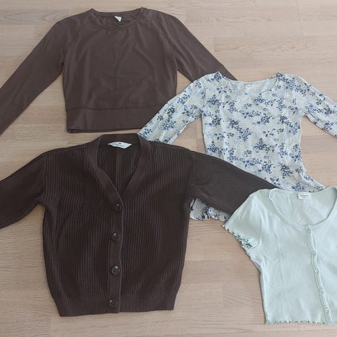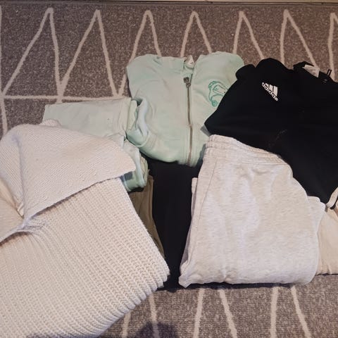 Myydään kiva pieni vaatepaketti puseroita ja mukava/pehmeä haalariasu koossa 164-170. Merkkejä lindex, H&M, kappahl. Koiratalous.