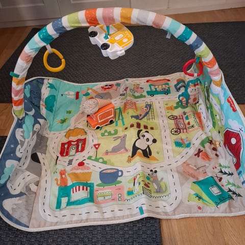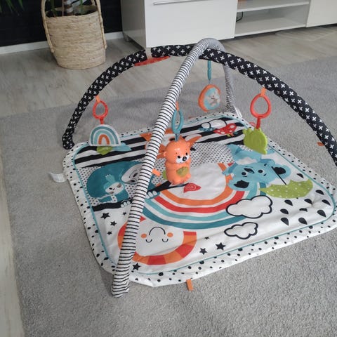 Lapsi liikuttaa jalkojaan. Musiikki syttyy. Ja se on vasta alkua Voit muuttaa kuntosalilla roikkuvien lelujen asentoa rohkaistaksesi lastasi koskettamaan ja tarttumaan nii.