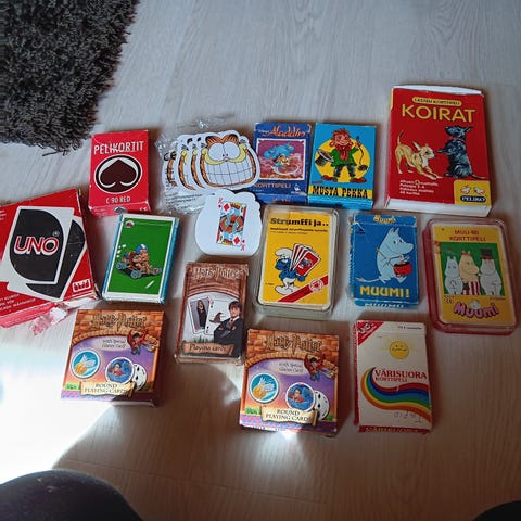 3. Posti-pelikortit. Kaikki kortit paitsi jokerit puuttuu, eikä ole aslia. Hp 1€ +pk